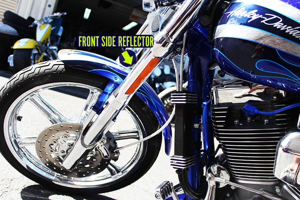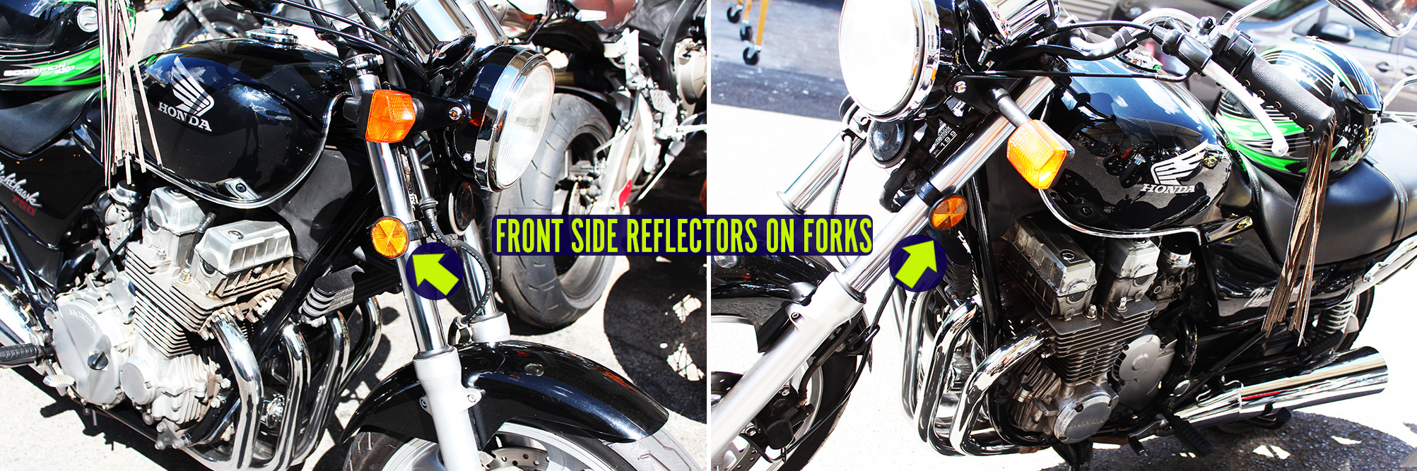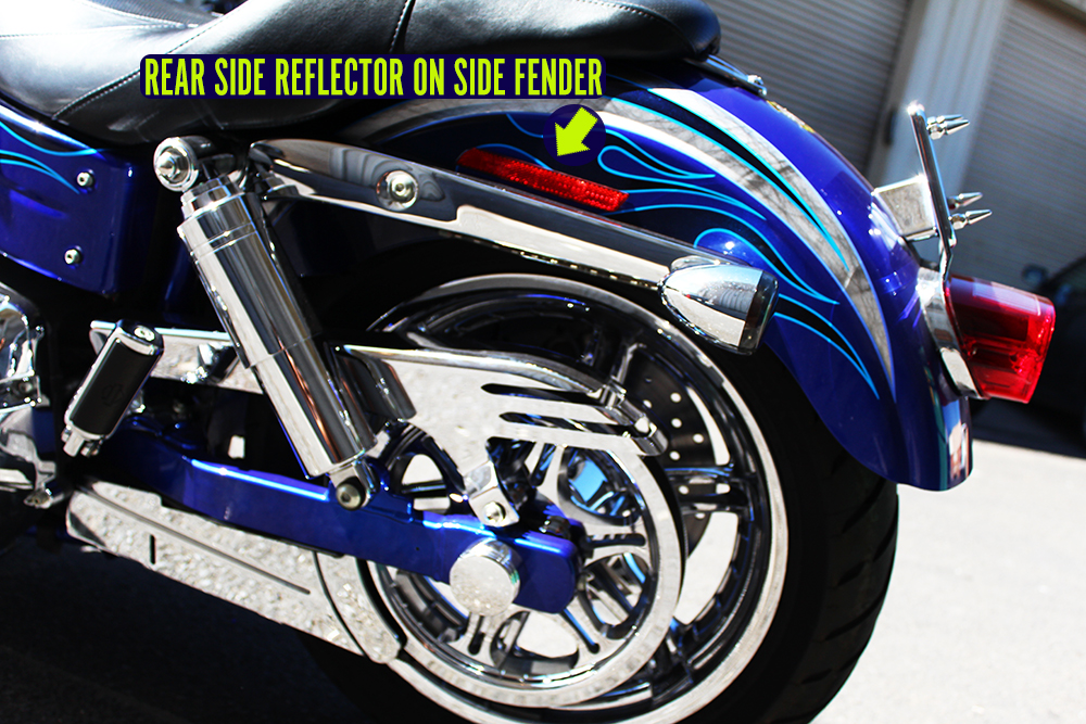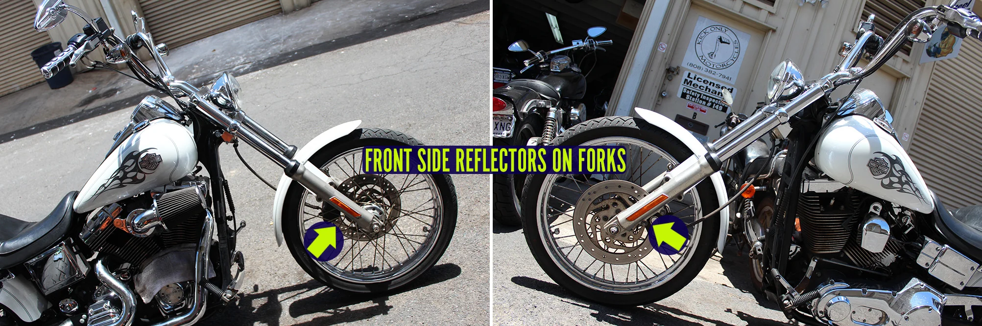 Please read below about the exact state requirements for turn signals, all lights, and reflectors. If your bike does not meet these requirements, your bike won’t pass inspection. Please don’t ask us to let you slide, because we could lose our license if we did that. We don’t make the laws. We provide safety inspections as a service to all our customers.